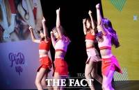 ガールズグループApinkが26日午後、ソウル・麻浦区(マポグ)のメセナポリスで6枚目のミニアルバム「Pink UP」発売記念ショーケースを開催し、華麗なステージを披露した。